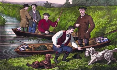 Today’s jigsaw puzzle is of an old painting of some hunters and their dogs. It looks like they are hunting ducks. I have to wonder about the men standing up in the boats, however. Me? I prefer to do my hunting with a camera. Enjoy!