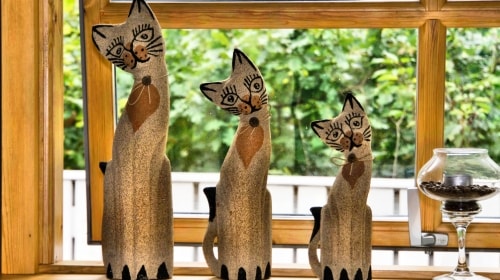 The fake cats in today’s jigsaw puzzle were meant to be cute, and they are… Until your cats knock them over at three o’clock in the morning! One of our cats likes to knock things over in the middle of the night. A lot, lately. Anyone want a cat with insomnia? Enjoy the puzzle!