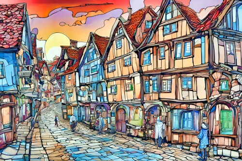 Today’s jigsaw puzzle is a street scene drawing that I found interesting. Hopefully you’ll like it too! Enjoy!